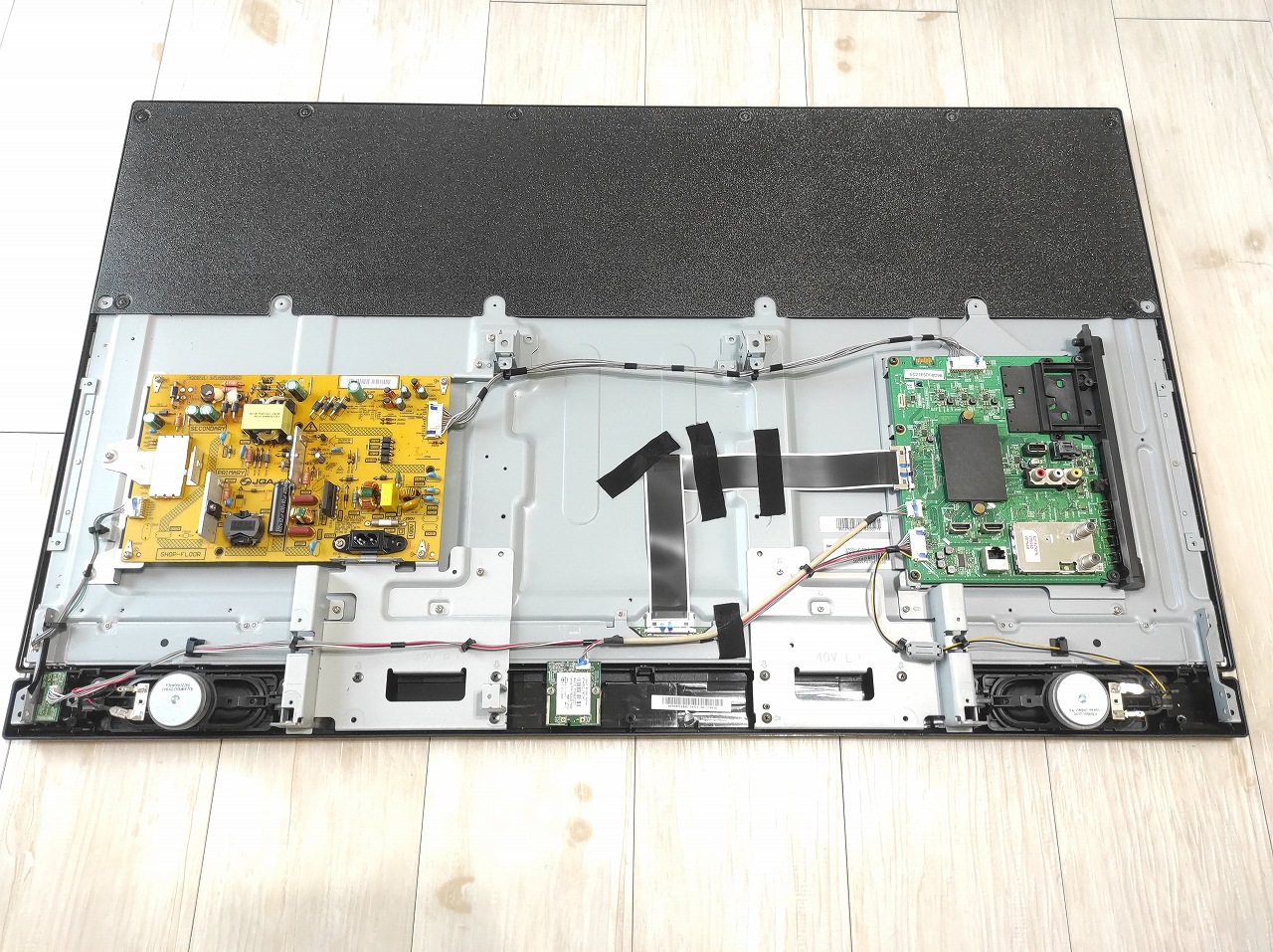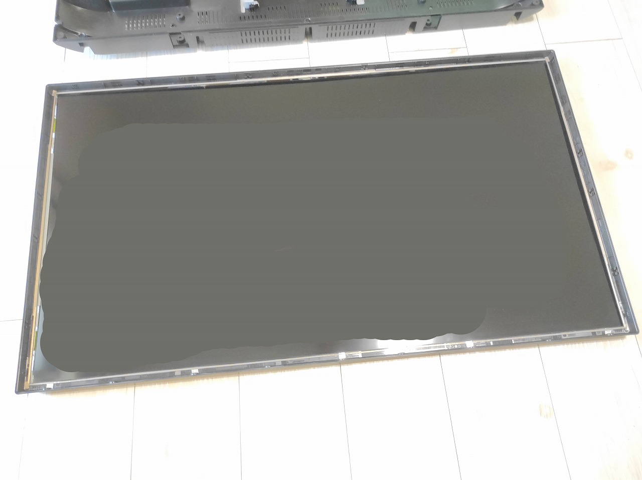 他にも数時間見ているとバックライトが暗くなり、電源を消すとフェードアウトして画面が消える症状の40V30も修理しましたが、同じくバックライトの故障でした。バックライトにLEDと一緒についているダイオード?が壊れたり熱で外れるとこのような症状になるようです。