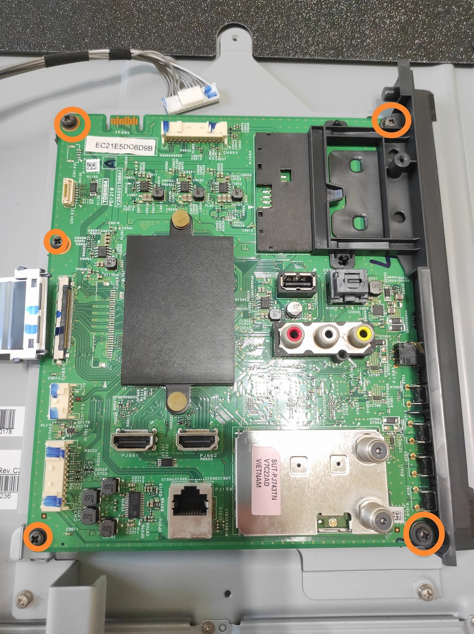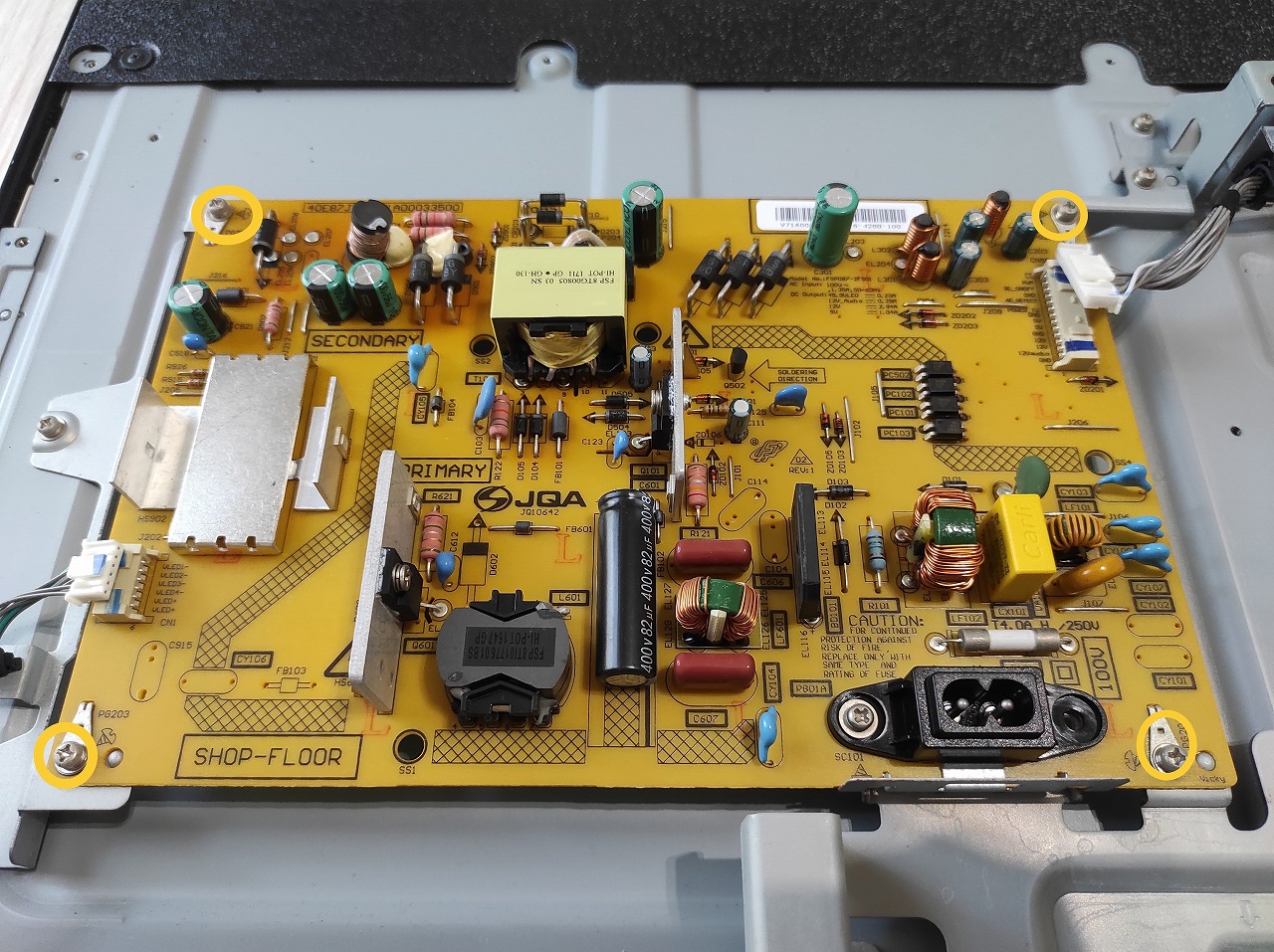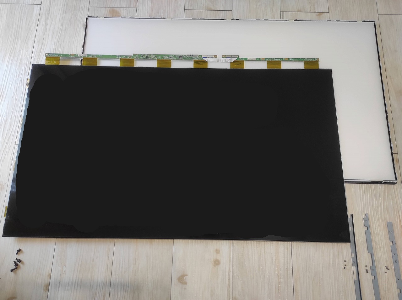 基板の交換は分解工程が少なくバックライトの交換よりも楽です。某オクなどで3,000円程度で買えますし、画面割れから部品取りをして他の基板を売ってもおつりがきます。