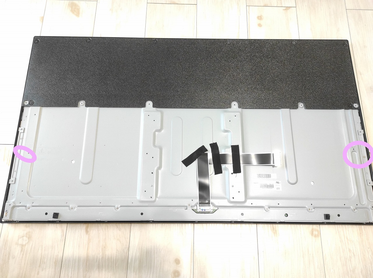 古いバックライトの両面テープの粘着質が残っているとバックライトと放熱板との間に隙間ができてしまいます。